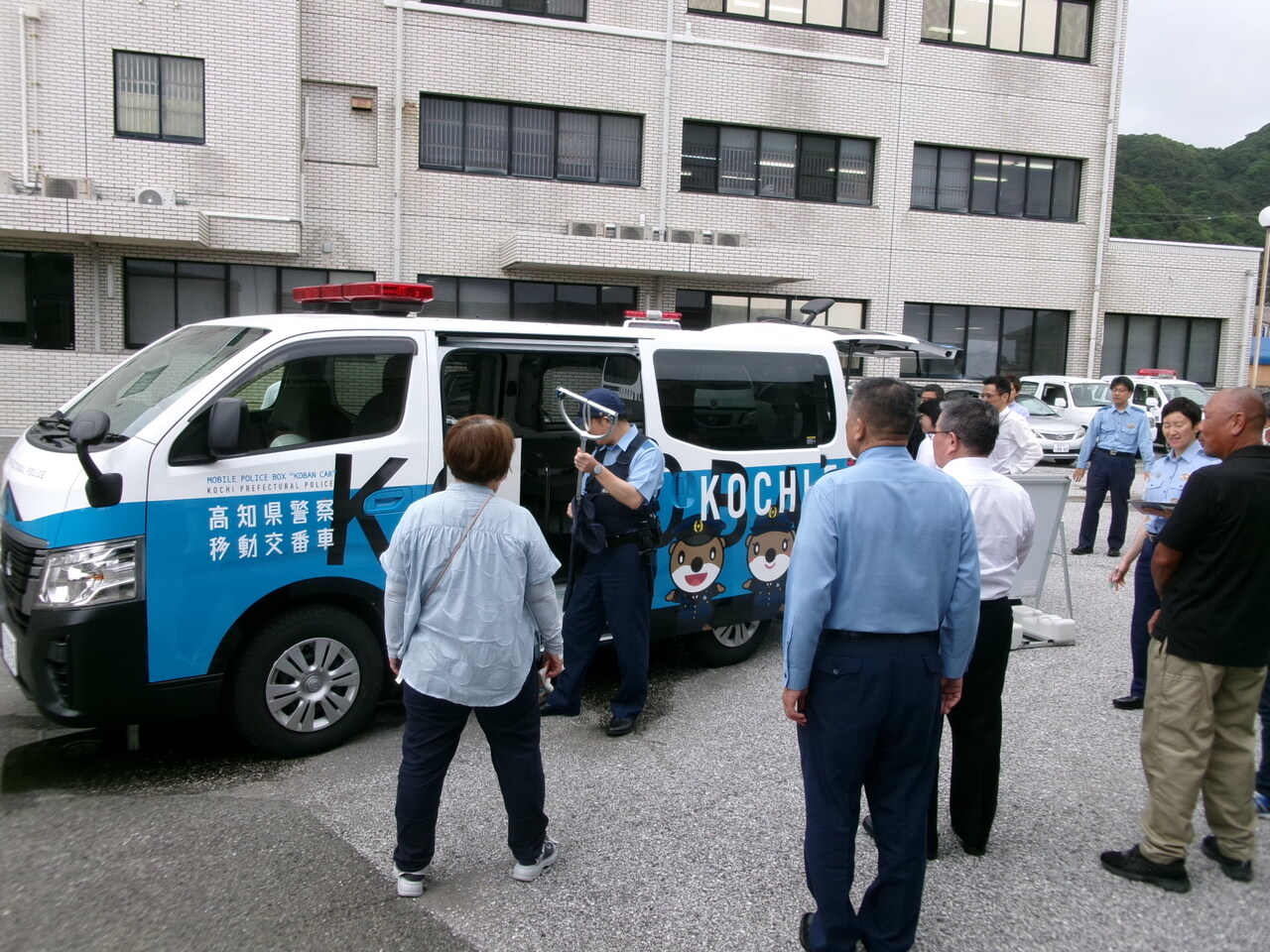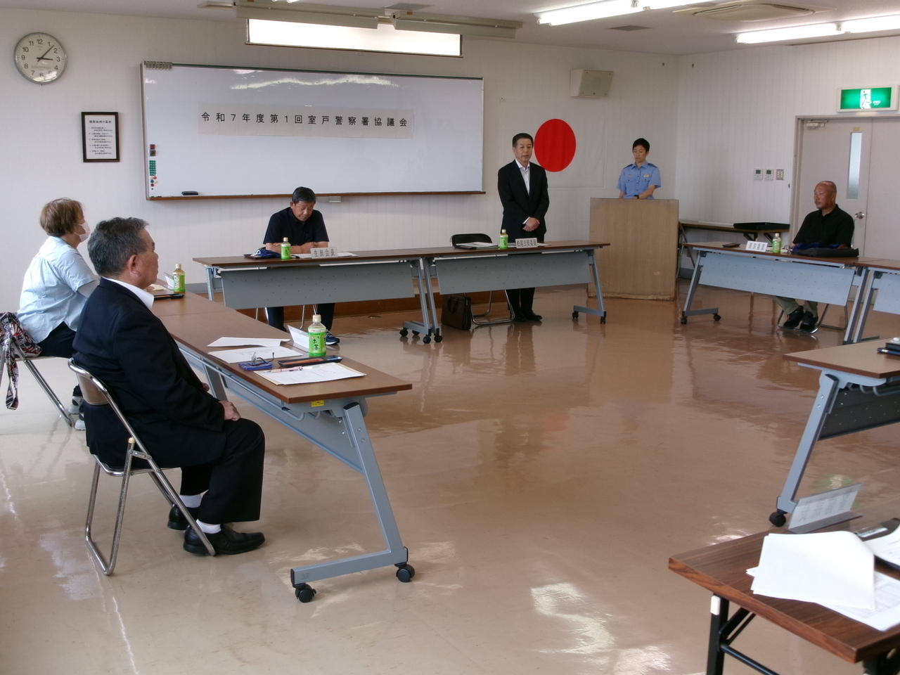 公開日 2025年10月08日 室戸警察署協議会(第1回)開催結果について 1 開催日 令和7年6月17日 2 開催場所 室戸警察署3階会議室 3 出席者 高知県公安委員会 松尾委員 室戸警察署協議会委員4名 署長以下7名 4 開催内容 高齢者対策について ○ 特殊詐欺被害防止対策 ○ 交通事故防止対策 ○ 災害対策 ○ 移動交番車両の視察 令和7年下半期室戸警察署速度取締り指針について