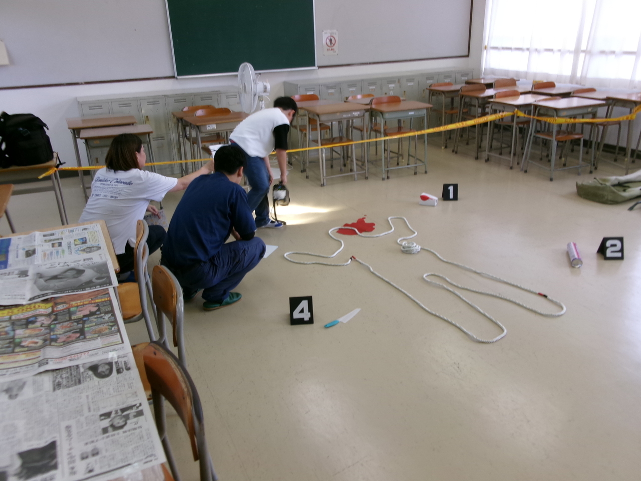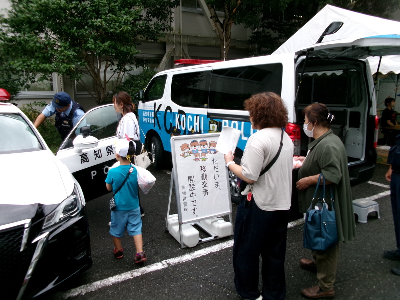 令和7年10月4日、室戸高校の学園祭に参加し、犯罪現場を再現した教室での鑑識体験、パトカーや移動交番車の展示などを行いました。